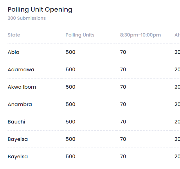 - Arrival and Number of RAs ready at collation centre(RAs, LGAs, Sates, Constituency)